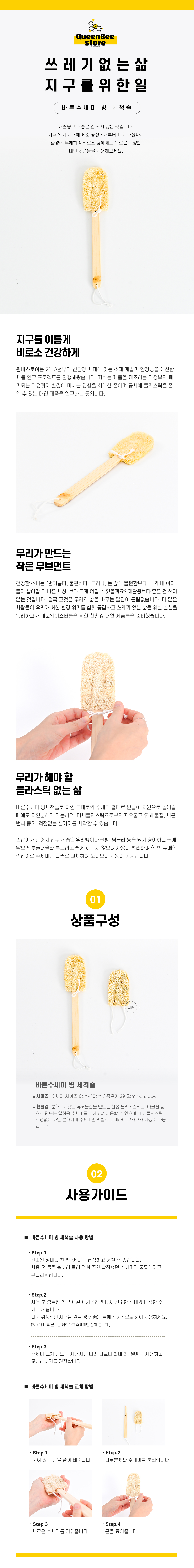 [퀸비] 천연수세미 컵 병 세척솔 다용도 청소