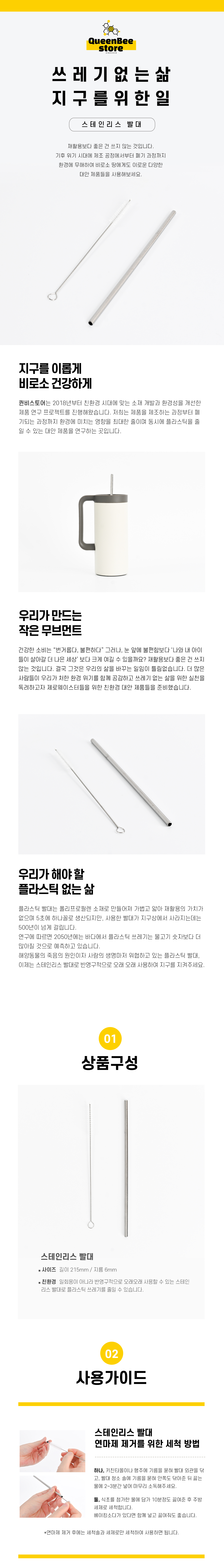 [퀸비] 캠핑 휴대용 스텐 빨대와 세척솔