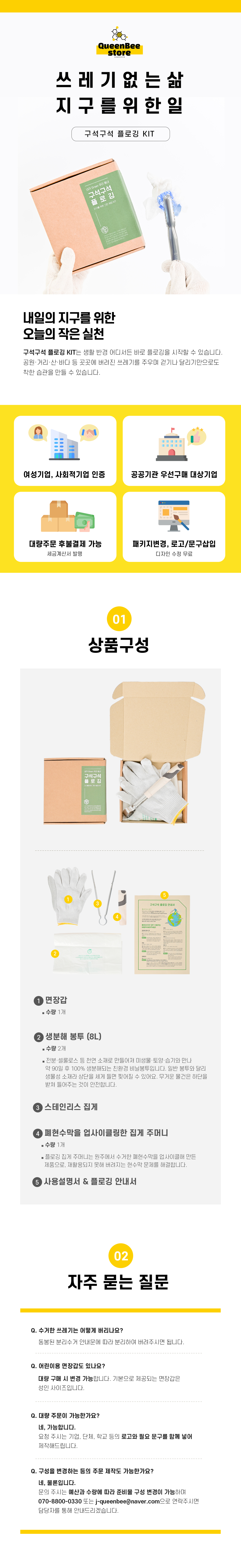 [퀸비스토어]제로웨이스트 줍깅 쓰줍 클린하이킹 플로깅키트 클린캠핑 생분해 선물